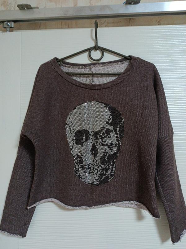 красивый свитшот, под бренд filip Plein, склад ткани натуральный,ухие камушки на городе, ничего не спится после стирки, бобомбеззащитная вещь