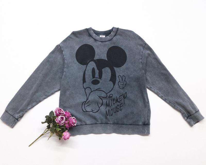 Стильный озорной свитшот с Микки Маусом Disney George, ищет хозяйку. Качественный, комфортный, универсальный, свободного кроя, легко вписывается в гардероб. Выполнен из плотного мягкого трикотажа двунитка с эффектом варки и милым мультяшным принтом. Состав: 97% хлопок, 3% эластан Размер указан М, фактически можно на больший. Замеры тут: плечи 59 см (спущенное плечо) по груди 60 см по талии 60 см по низу 54 см длина 66 см длина рукава 56 см от горловины до низа рукава (плечо+рукав) 75 см пройма 26 см Состояние безупречное. Обмена и возврата нет. Ф181025