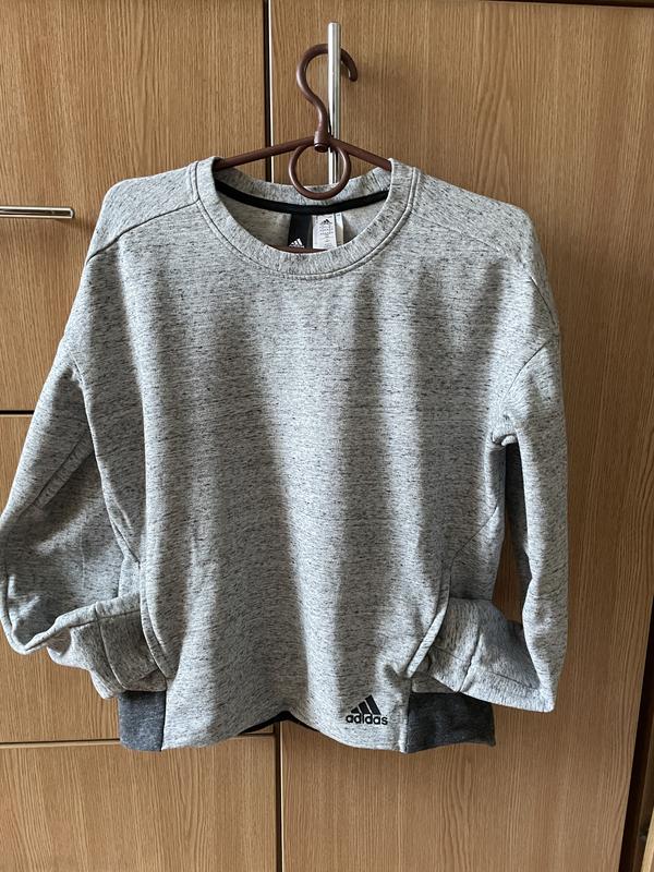 Світшот Адідас оригінал, куплений за кордоном. 85% бавовна, є бічні кишені, утеплений. Розмір позначений М, але скоріше на S. НОГ 50, довжина 55. Довжина рукава по в/ш 48.