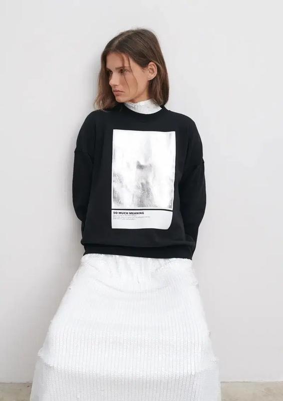 Свитшот zara Размер С Длина 54 см Грудь: до 110 см Талия: до 104 см Бедра: 96-106 см Ширина плеч: приспущенные 55 см Длина рукава: 49 см Склад тканини: тринитка на флісі