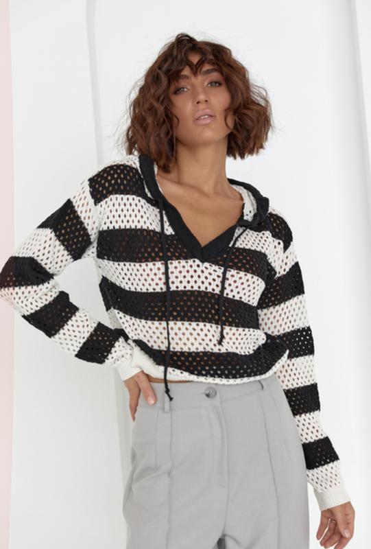 Стильна кофтинка з капішоном,вкорочена модель, стильно виглядає в образі. Бокова бірка відсутня. Довжина 39 пог 43+57 ширина внизу 35 Рукав від горловини 68 за додатковою інформацією звертайтеся.