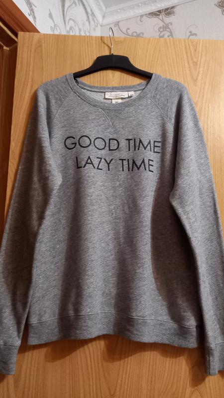 💢 Женский серый модный свитшот с надписью на лицевой стороне, с круглым вырезом горловины, длинным свободным рукавом-реглан, прямого фасона с эластичной планочкой по низу, из очень мягкого и эластичного котонового материала - внутри плотненький, хорошо тянется. 💢 Прекрасный повседневный свитшот для осеннего и весеннего сезонов, удобный, мягкий, тёплый, модный и хорошо комбинируемый 👍👍👍 💢 Размер: 46 (54), 💢 замеры: ПОГ- 60, ПО по низу-58- 60, длина-70см. 🔊 ОТПРАВЛЕНИЕ ПОСЫЛКИ В ЗАКЛЮЧ 📬