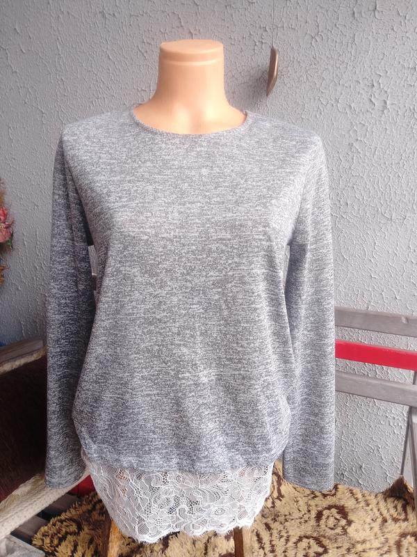 ,Кофта жіноча,б/в,Легка внизу з кружевом.Розмір М/L.Заміри:довжина-75см,рукав-60см,плече-12 см,напівобхват грудей-50 см.Бренд-H.M
