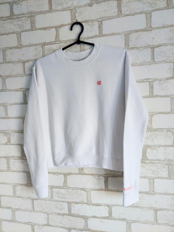 Свитшот Calvin Klein Jeans белого цвета. Оригинальный. Мягкий и теплый, с начесом внутри. Минималистичный дизайн с маленьким розовым логотипом CK на груди и надписью на рукаве. Состояние отличное, без пятен и дефектов. Подойдет для повседневных образов. Если нужны замеры, пишите.