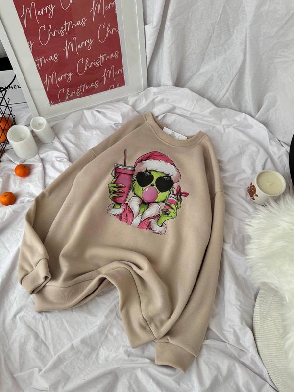 Жіноча повсякденна класична тепла флісова кофта світшот з малюнком тканина тринитка на флі...