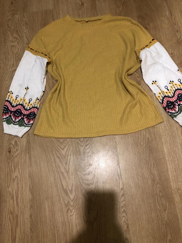 По бирке s, оверсайз Плечи опущенные Груди 64 Длина 66 Рукав от горловины 75 Шикарные вышитые рукава Без нюансов