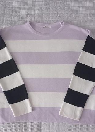 Женский коттоновый свитшот TU с интересным сочетанием цветов( лаванда, белый, черный). р.12(М/L). Оверсайз.Длина 58смПод подмышками 60см, рукавчик приспущен, от горловины 69см.50% коттон,