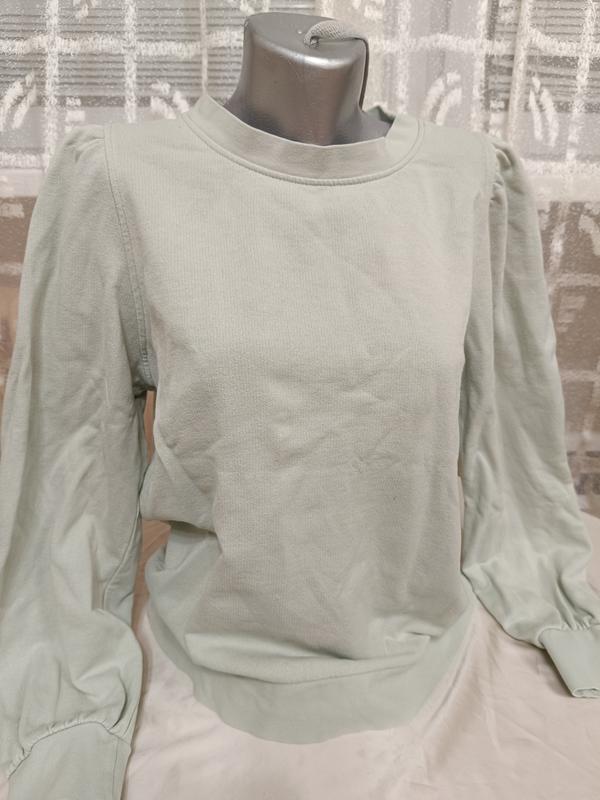 Красивый коттоновый свитшот, нежно оливковый цвет. Объемный рукав Размер S