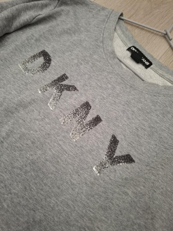 Серый свитшот DKNY с логотипом из пайеток прямой свободный крой М