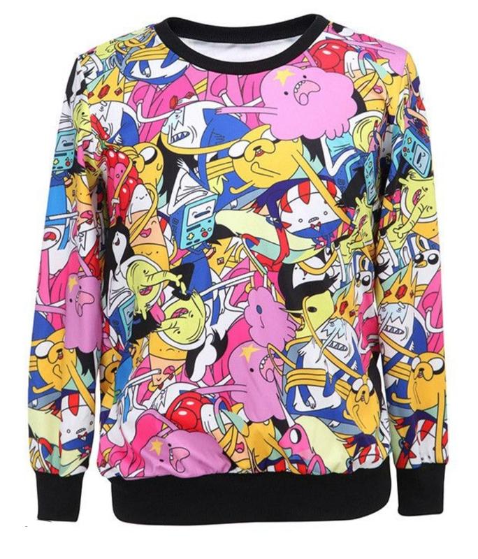Бесподобный свитшот с 3d принтом в мультяшный принт время приключений
