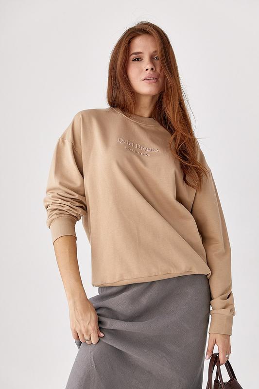 🔸Свитшот с объемной надписью🔸 Однотонный хлопковый свитшот свободного кроя выполнен из мягкой и приятной к телу ткани, что обеспечивает комфорт в течение всего дня. По горловине, рукавам и низу изделия расположены эластичные манжеты, которые хорошо держат форму и добавляют изделию аккуратный вид. ✔️Артикул: 2610 🔹Тканина: трикотаж 2-нитка (100% бавовна) 🔹Размеры: S, M, L 🔹Производитель: Турция