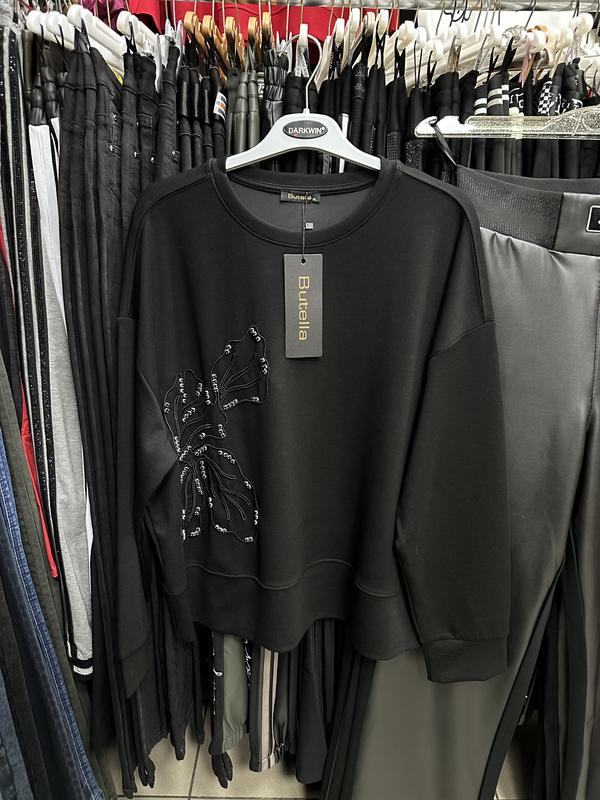 Світшот Турція 🇹🇷 Butella 47 viscon 6 elastin 47 poliester Заміри по виробу! —————- Бірка S Груди 58 Ширина низ 58 Довжина 61 —————— Бірка M Груди 60 Ширина низ 60 Довжина 61 —————— Бірка L Груди 62 Ширина низ 62 Довжина 63 —————— Бірка XL Груди 65 Ширина низ 65 Довжина 65 ——————