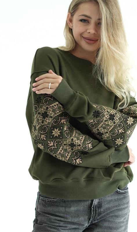 Колоритный свитшот вышиванка трехнитка петля, украинская кофта вышиванка, этатно свитшот с...