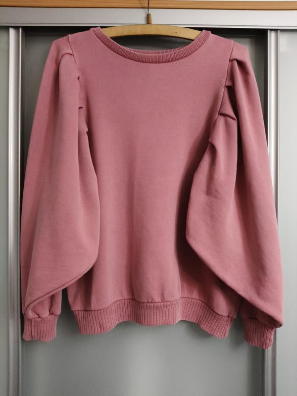 Свитшот с широкими рукавами коттоновый.Пометные следы носки, потребует стирку.Есть дефект на резинке,казано на последнем фото. Пог-52-55 Пот-57 Поб-57 Длина-69 Дов.рукава от горловины-76