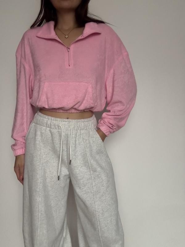 рожевий кроп-світшот з велюру з коміром на блискавці та кишенею-кенгуру.Missguided Розмір : С/М (38) Стан : ідеальний