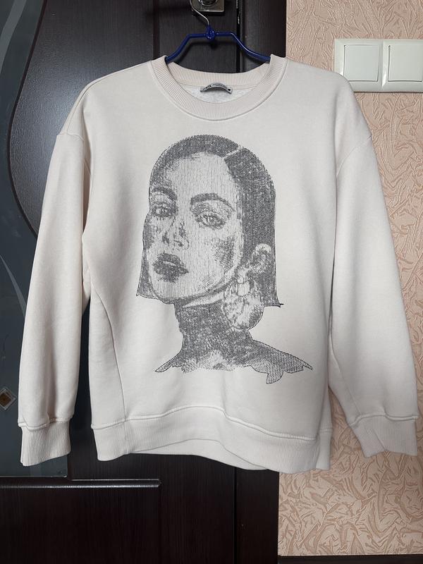 Класний теплий світшот з вишивкою в дуже гарному стані, розмір вказаний s але буде на m також, колір молочний або світлий беж, про 54, довж, 63, рукав від горловини 68, ціна щоб забрати
