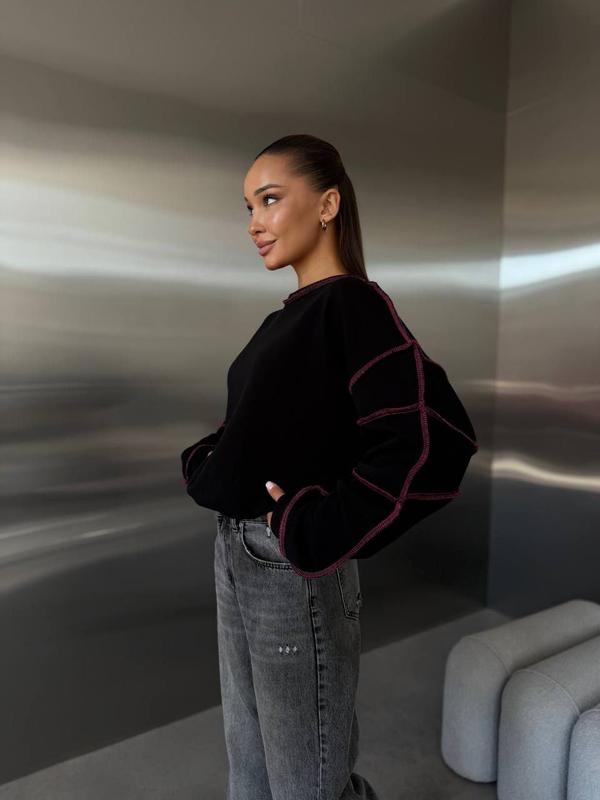Світшот з контрастними швами — стильний та зручний варіант для щоденного гардеробу. Легка турецька петля приємна до тіла й добре тримає форму, а вільний крій забезпечує комфорт і сучасний вигляд. Ідеально поєднується з джинсами чи спортивними штанами для невимушених образів. ▪️ Тканина: турецька петля ▪️ Розмір: 42/46 ▪️ Кольори: чорний, білий, ніжно-блакитний