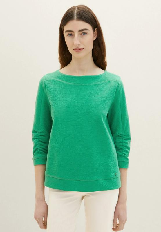 Текстурований світшот Tom Tailor 64% бавовна, 36% поліестер Довжина 61 см Ширина під пахвами 53 см, тягнеться до 65 см Ширина знизу 53 см, тягнеться до 65 см Ширина в плечах 41 см Рукав від плеча 47 см