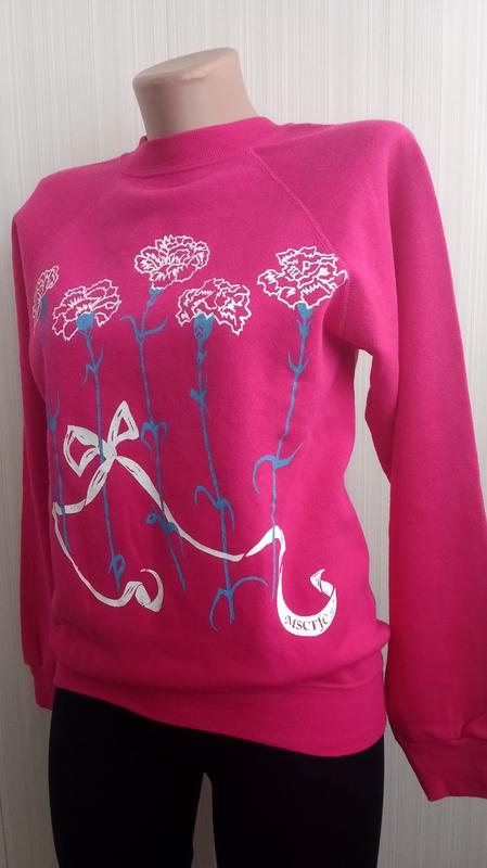 винтажный женский свитшот из флиса цвета фуксии с цветочным рисунком новый без бумажной этикетки пог 45 длина 61 длина рукава от горловины 70