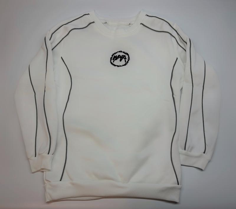 Розміри: • Довжина: 58,5 см • Ширина по грудях: 41 см • Ширина по низу: 43 см • Плечі: 40,5 см • Довжина рукава: 65 см Підходить для зросту 155-165 см. Особливості: • Колір: білий • Розмір: S • Стан: новий • Контрастна чорна окантовка • Логотип на грудях • Класичний крій
