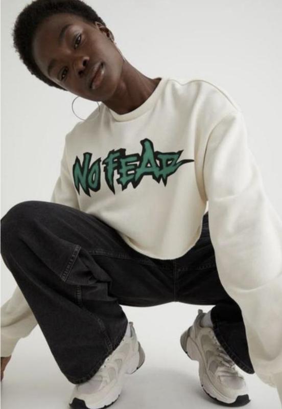 Вкорочений світшот молочний з принтом, на флісі, стан супер.