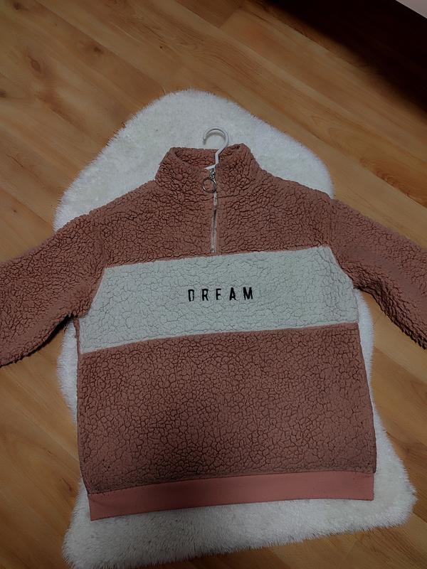 Теплый и уютный флисовый свитшот Colin's с высоким воротником и короткой молнией. Мягкий плюшевый материал (teddy), приятный к телу, хорошо сохраняет тепло. Нежный пудрово-розовый цвет с молочной вставкой и вышивкой “DREAM” смотрится очень стильно и актуально. Идеально подходит для прохладной погоды, прогулок или дома. Состояние хорош: без дырок, молния работает исправно, есть незначительные следы носки, которые не влияют на вид. Бренд: Colin’s Цвет: пудрово-розовый Материал: флис (teddy) Воротник: высокий, на молнии Сезон: осень-зима. Размер: XS. Длина: 64 см Длина рукава от плеча: 68 см. Обхват грудей: 51 см. Ширина: 45 см.