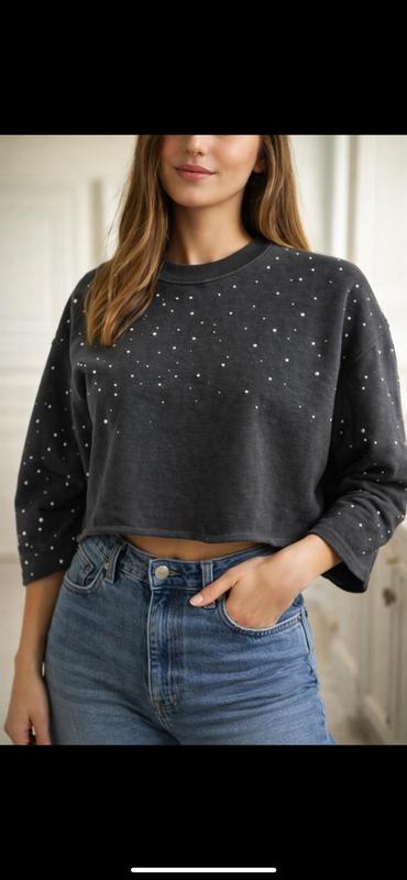 Стильний світшот від Tally Weijl з декоративними камінцями, легкий трикотаж, приємна на дотик тканина, укорочений крій. В дуже хорошому стані, без плям і дір.