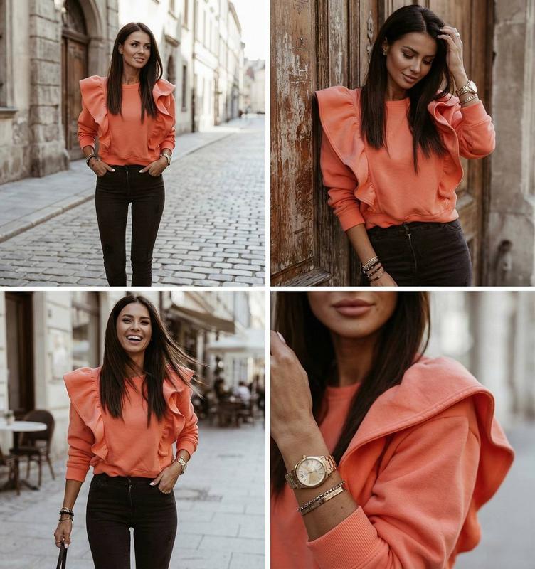 Кофточка №464 Цена 450 грн размер Оранж42-44,46-48 тканина-тринитка Красивый, теплый свитшот с рюшами.