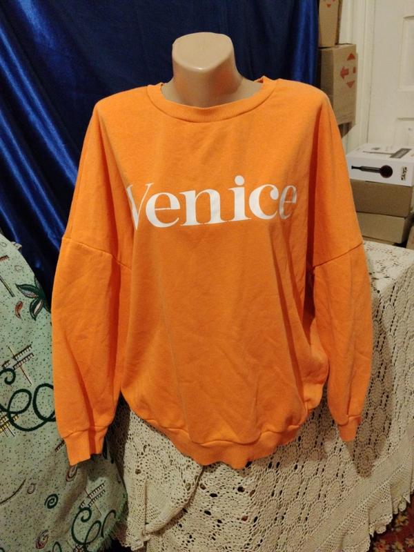 очень красивый оранжевый свитшот с надписью.Ткань теплая, мягкая и хорошо тянется.Размвр л,хл, 2хл, 3хл. опис состояние отлочный длина 66 рукав 59 ширина комди 73