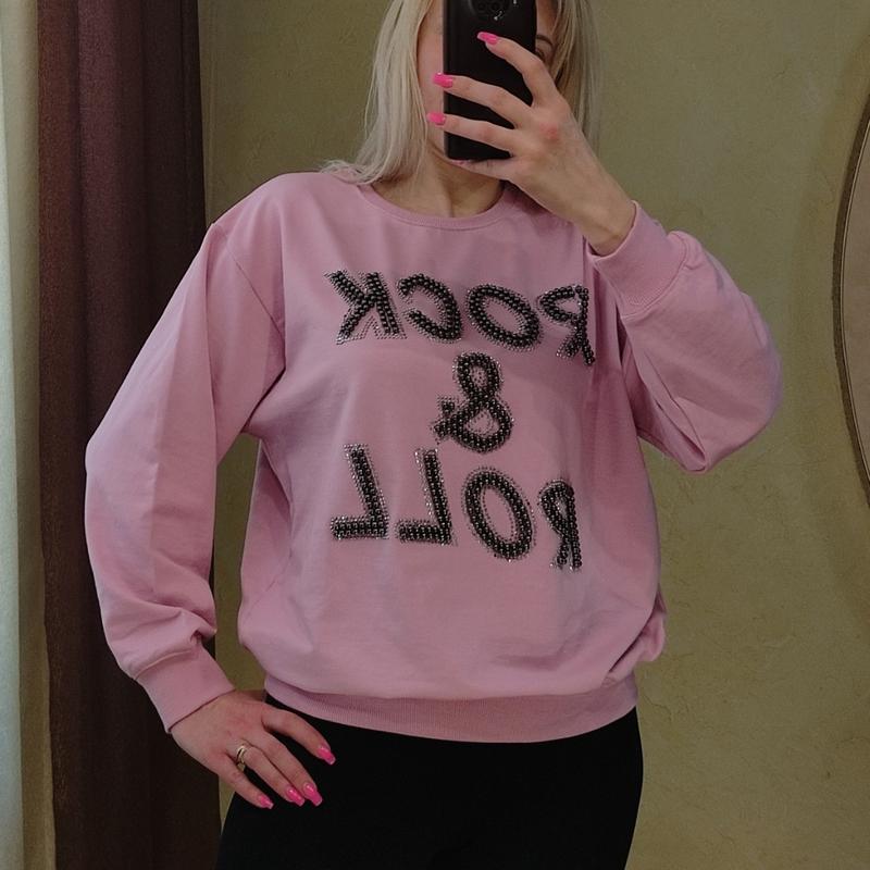 Нежный розовый свитшот Размер от М до XL ПОГ - свободно, 56-57, ПОТ - 54-55, ПОБ - 46, тянется до 51. Длина 62. 52% коттон, 48% полиэстер Новый, без бирки Надпись Rock & Roll, украшенная блестящими бусинами, добавляет образу стиля и настроения. Мягкий, комфортный, с классическими манжетами - идеален для ежедневных луков с джинсами, юбками или шортами. Сочетание нежности и драйва ✨ Rock & Roll ассоциируется с яркой индивидуальностью, смелостью и молодежным духом.✨ В моде эта надпись используется не буквально о музыке, а как символ настроения – уверенность в себе, свобода самовыражения, сочетание нежности и характера✨