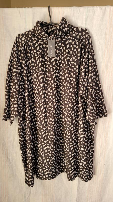 длинный свитшот с горлом, над грудью по плечам немного присборено,рукав 3/4,очень мягкий, ог 154+, об 160+, рукав от ворота 55, длина 92.