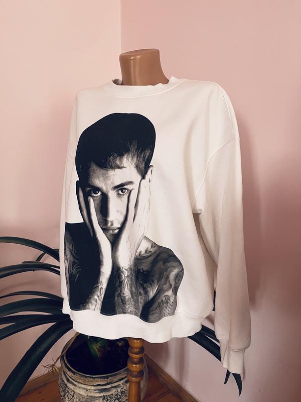 Белый свитшот оверсайз размер m-l, свитшот с джастином бибером