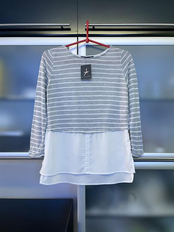 Atmosphere стильна кофточка. Тканина мʼягусенька, приємна до тіла. Розмір з бірки 8/36. Довжина 69/64 см. Напів обхват грудей 44 см, тягнеться. Рукав 52 см. Плечі 32 см. Віскоза/поліестер. ‼️ нова продана.