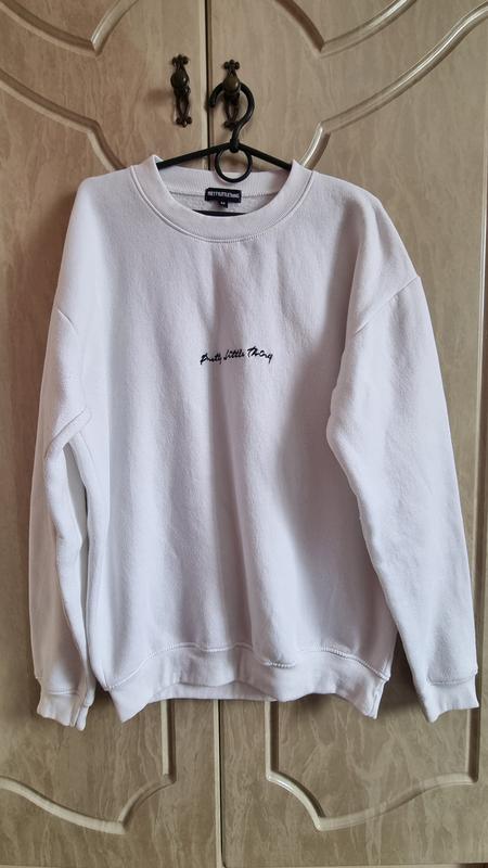 Белый свитшот бренда PrettyLittleThing с вышитым логотипом. Размер М.