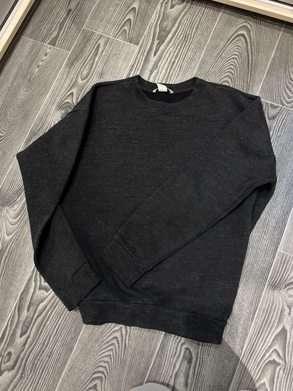 Классный свитшот от H&M, темно-серый цвет, немного утеплен. Размер М. Плечо немного приспущено, сидит очень классно на фигуре