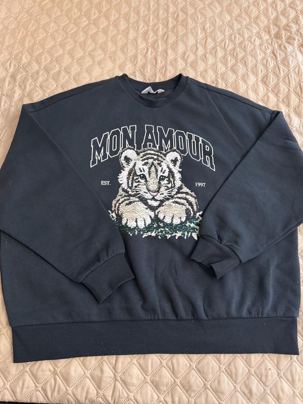 Світшот в новому стані, без бумажних бірок, в середині фліс, гарна якість, розмір М ( великомірить) орієнтуємось по замірах: ПОГ - 70см, рукав від горловини 81,5см, довжина 69см.