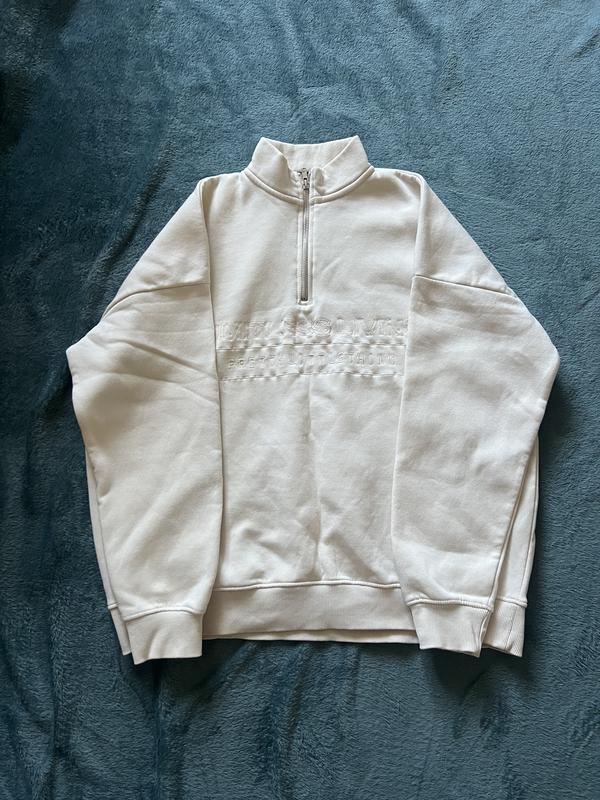 Молочный свитшот с молнией на воротнике от бренда PrettyLittleThing с надписью "Limitless Living". Идеальное состояние Размер М Цена 250 грн