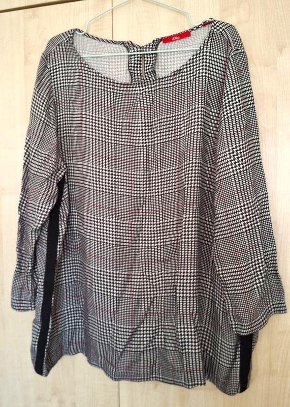 Отличная трендовая кофточка в клетку и "гусиную лапку" от известного европейского бренда. Легкая, удобная, модная. По бокам - черные лампасы. Рукав 7\8. Прямой крой. К джинсам, черным или белым брюкам. На европейский 46. Замеры: плечи 46 см, рукав 50 см, длина по спинке 66 см, пог 64 см, пот 65 см, поб 70 см. Состав: вискоза, на ощупь как коттон.
