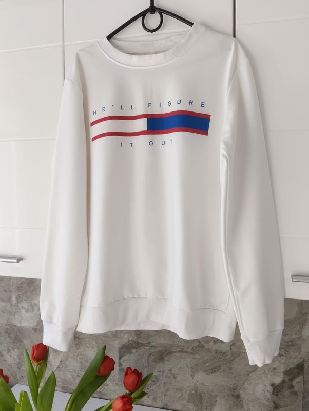 белый стильный базовый свитшот известного бренда стан 🔥 минимально.... размился принт.... см фото...на внешний вид не влияет.