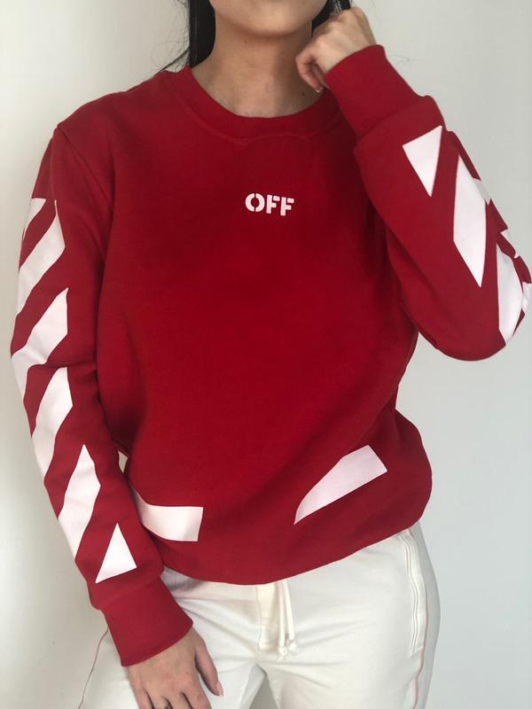 Абсолютно новые свитшот Off-White. Цена по скидке . Остался последний размер. Размер - M (маломерный). На фото девушка 165 и 52 кг - свитшот хорошо сидит. Параметры размера M - плечи 42 см., грудь 98 см., рукав 56 см., длина 65 см.