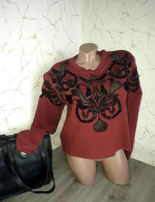 Толстовка укороченой моделі .З начосом всередині.Розмір S-M ПОГ 51 см Довжина 50 см. НО стегон 52ми. Від плеча до плеча 46 см Рукав 57