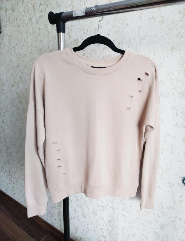 Свитшот от new look, со стильными рваностями. Ткань нежного телесного цвета, есть немного катышков. Размер 10(S), отправка Новой Почтой.