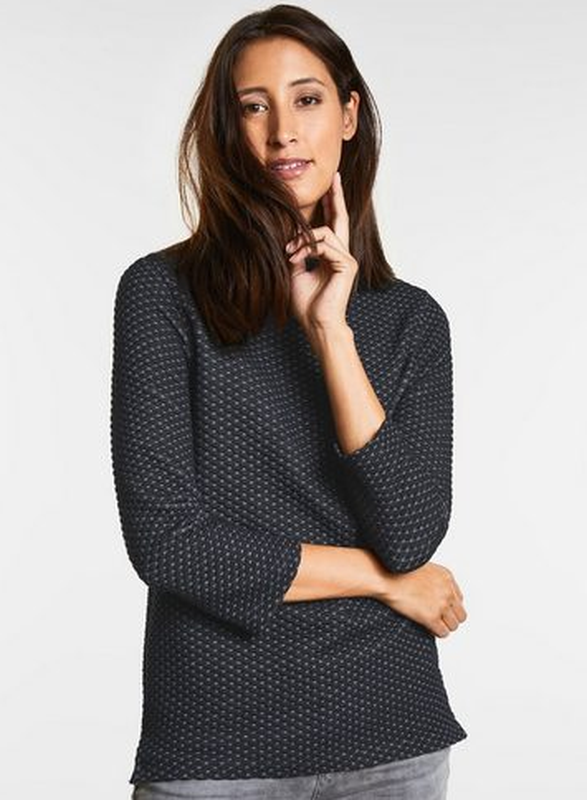 Фактурний джемпер від street one . Прямого крою з м'якої тканини, з боків разрезики, укорочений рукав, йде на розмір S-M Матеріал: 73% поліестер, 17% віскоза, 10% еластан.