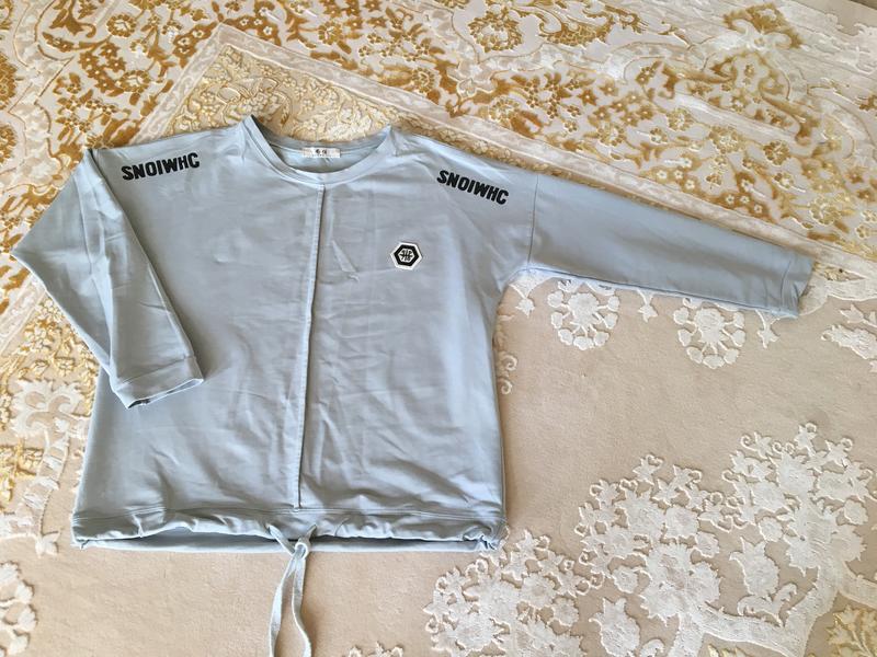 свитшот в идеальном состоянии на кулиске, ткань тонкая. ПОГ 55 см Длина 56 см Рукав 40 см. плечо 22 см.