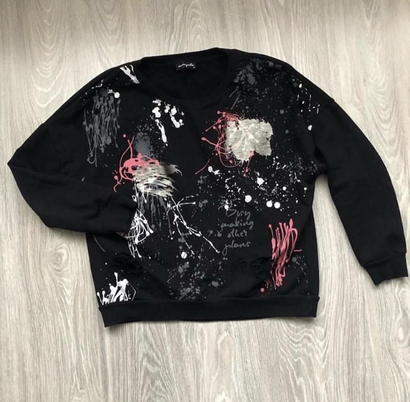 Стильний світшот, знизу дірочки, розмір С, Одягнений 2 рази, ПОГ 57 см, Довжина рукава 40см Довжина 56см