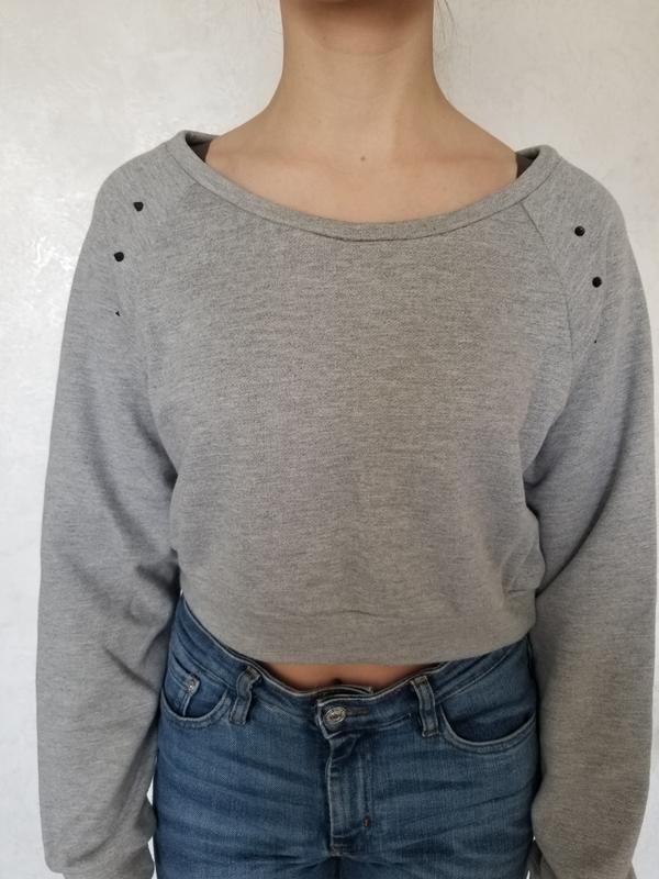 Укорочена кофта в сірому кольорі . Рукав реглан. Декорована шипами