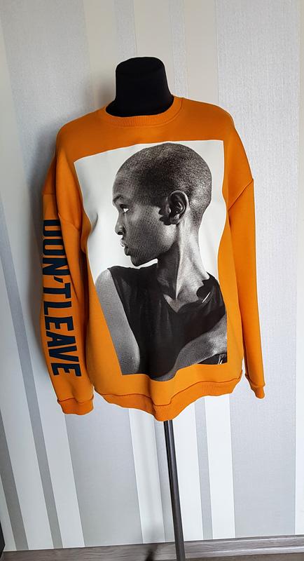 Шикарный свитшот Оверсайз из лимитированой коллекции жёлтый с принтом. Ткань трикотаж похож на неопрен. Надпись тёмна зелёная. Размер S, надета на манекен S. Без дефектов