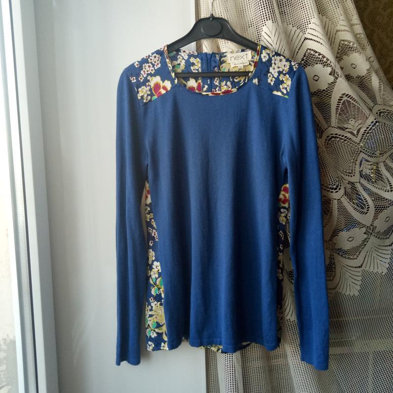 теплый свитер с шифоновой спинкой На спине цветочный рисунок, есть потайная змейка Размер М/ но отлично будет и для S Длина 63см ПОГ 47см ПОТ 45см Рукав 64см немного тянется новый, без дефектов в составе 100% хлопка с шерстью. спинка из полиэстра