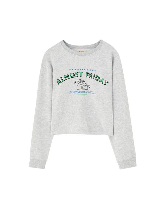 Укороченый світшот Pull&Bear сірого кольору. В дуже хорошому стані, розмір М. Хорошої якості, приємний до тіла.