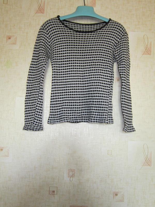 Очень приятный к телу (похоже на хлопок почти 100%) лонгслив в полоску , состоящую из горошка. Бирки срезаны ПОГ 40 и тянется длина 50 длина рукава 50 Горловина отделана атласной лентой Смотрите другие мои лоты)